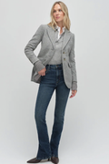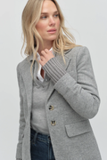 Slim fit, recycled wool-blend blazer. There’s faux horn buttons, front flap pockets, delicate stitching details and a brushed, soft finish. Also, cotton-cashmere ribbed cuffs for when walking to work is your very own fashion show.