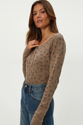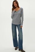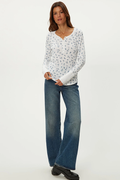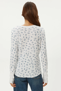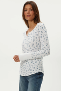 Regan is a long sleeve henley tee with a curved hem and extended cuffs. Printed with delicate flowers and made from our soft Thermal fabric that is the perfect mid-weight, waffled texture, and is great alone or for layering.